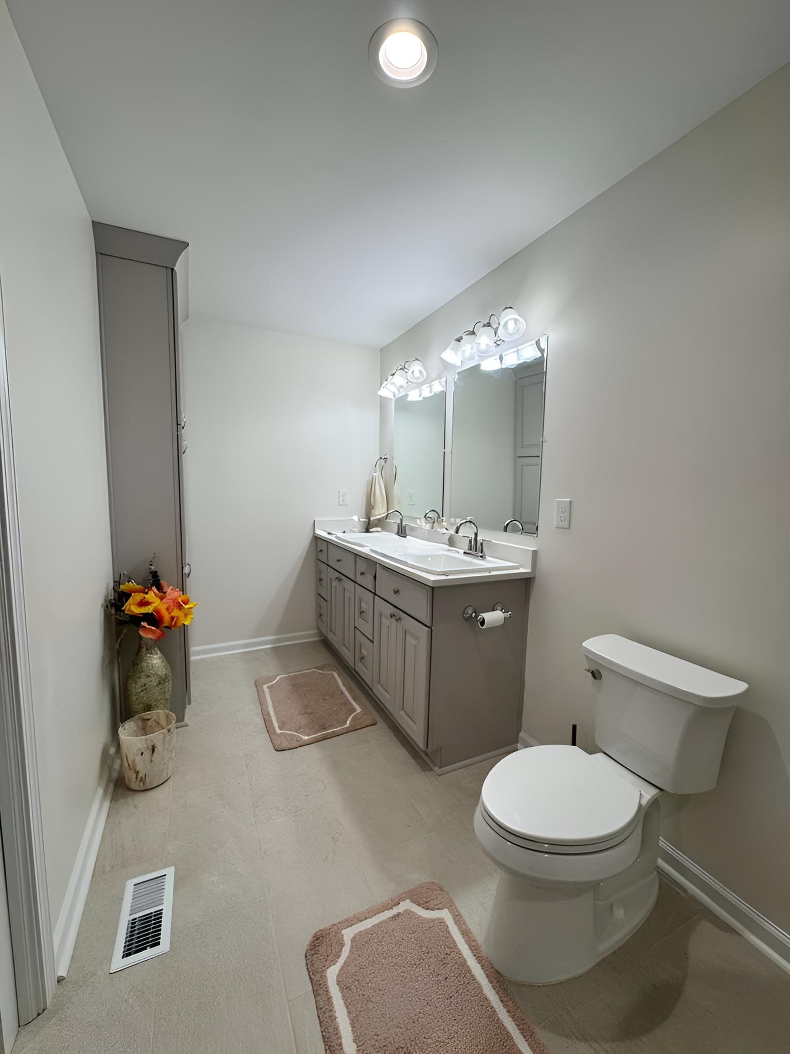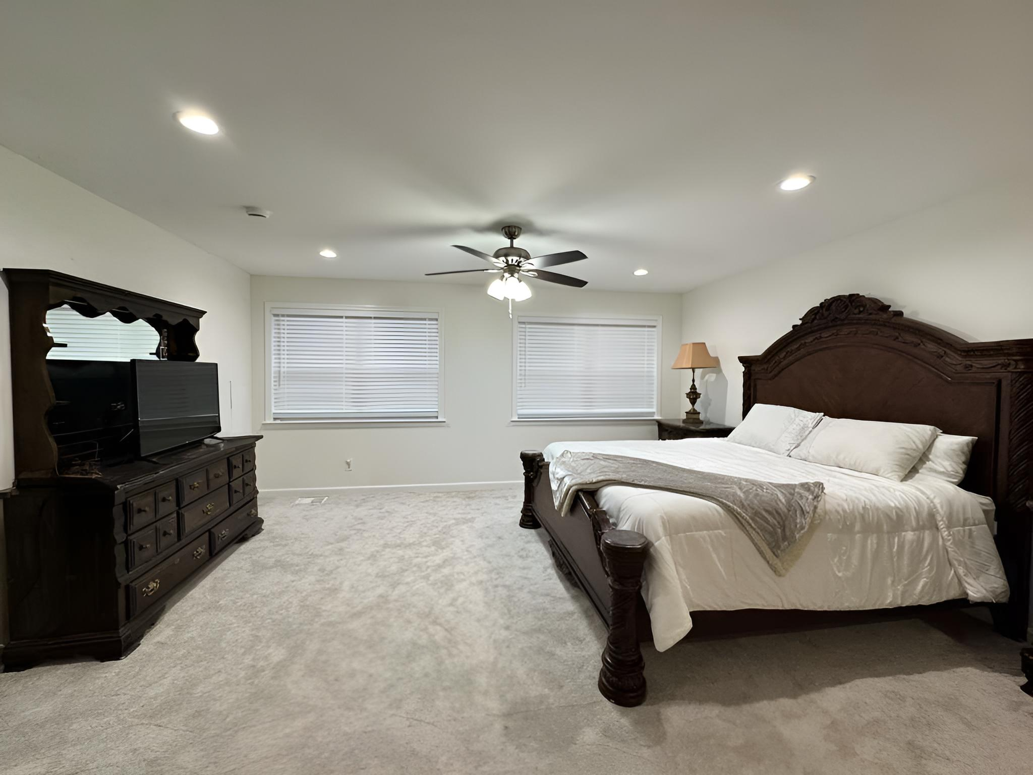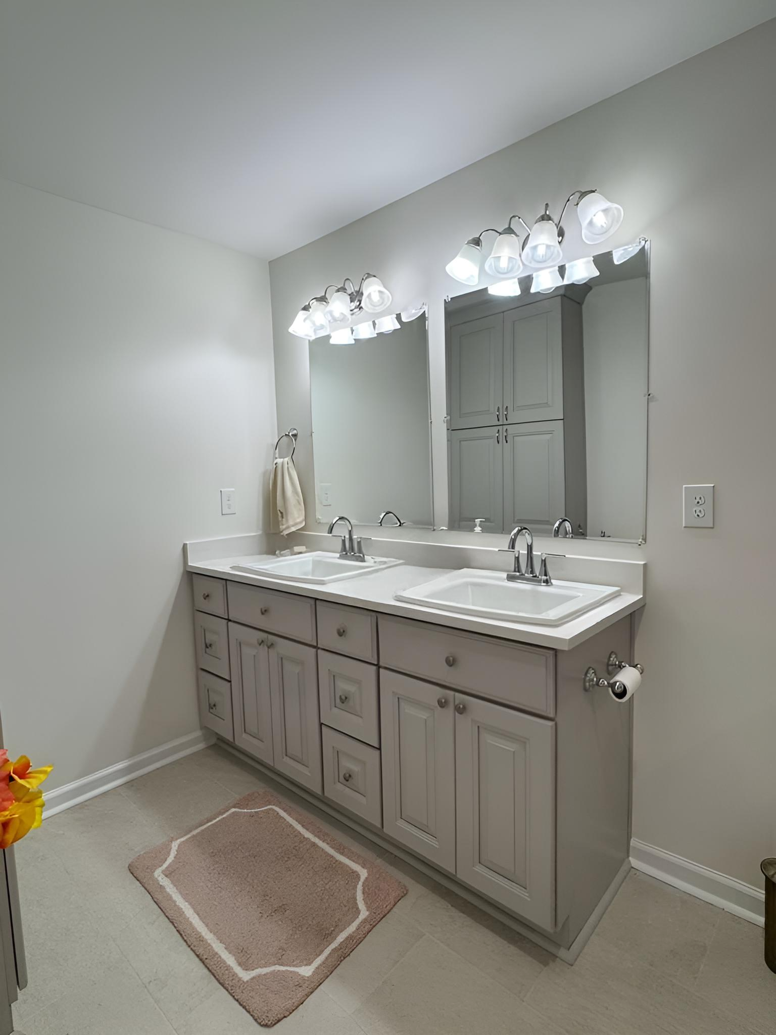 This full home renovation in Marietta by JMR Home delivers a modern and refined transformation across the basement, bedrooms, kitchen, and bathrooms. The open-concept kitchen features a central island, granite countertops, luxury finishes, and modern lighting, creating a seamless and elegant living space. Bathrooms were designed with premium materials, incorporating jacuzzi tubs, dedicated bathing areas, and sleek glass enclosures for a spa-like experience.