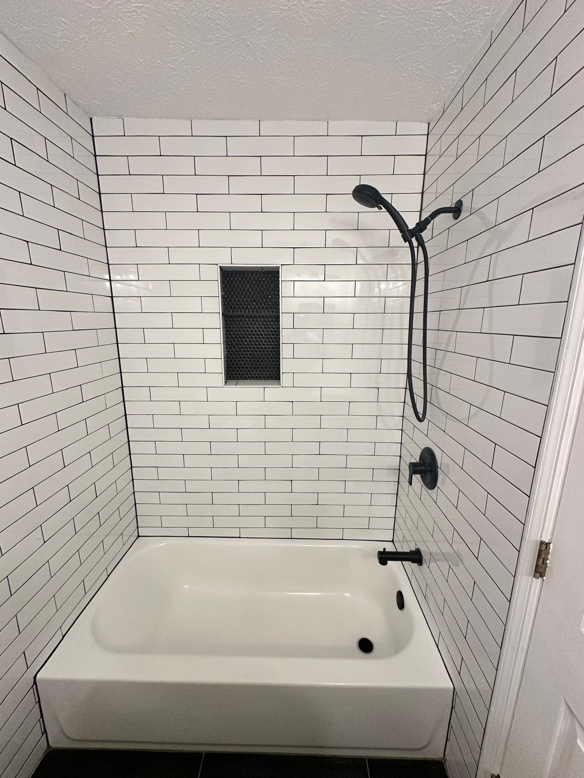 The renovation transformed the bathroom into an elegant, serene personal sanctuary.
