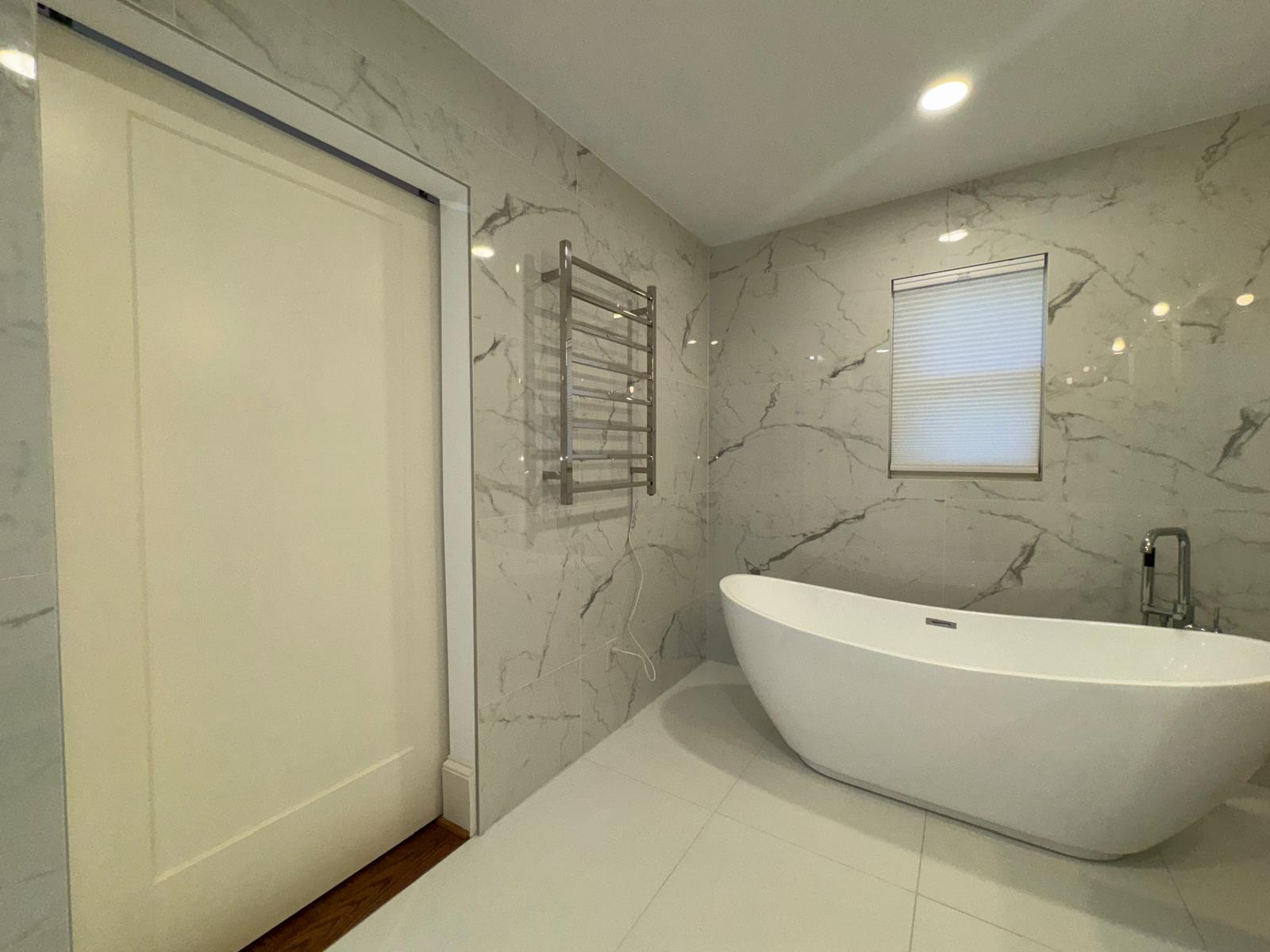 Ordinary bathroom elevated to elegant space, Custom design elements, Luxurious finishes, Reflects homeowners refined taste, Visual stunning, Daily relaxation haven, The renovation created a sophistica