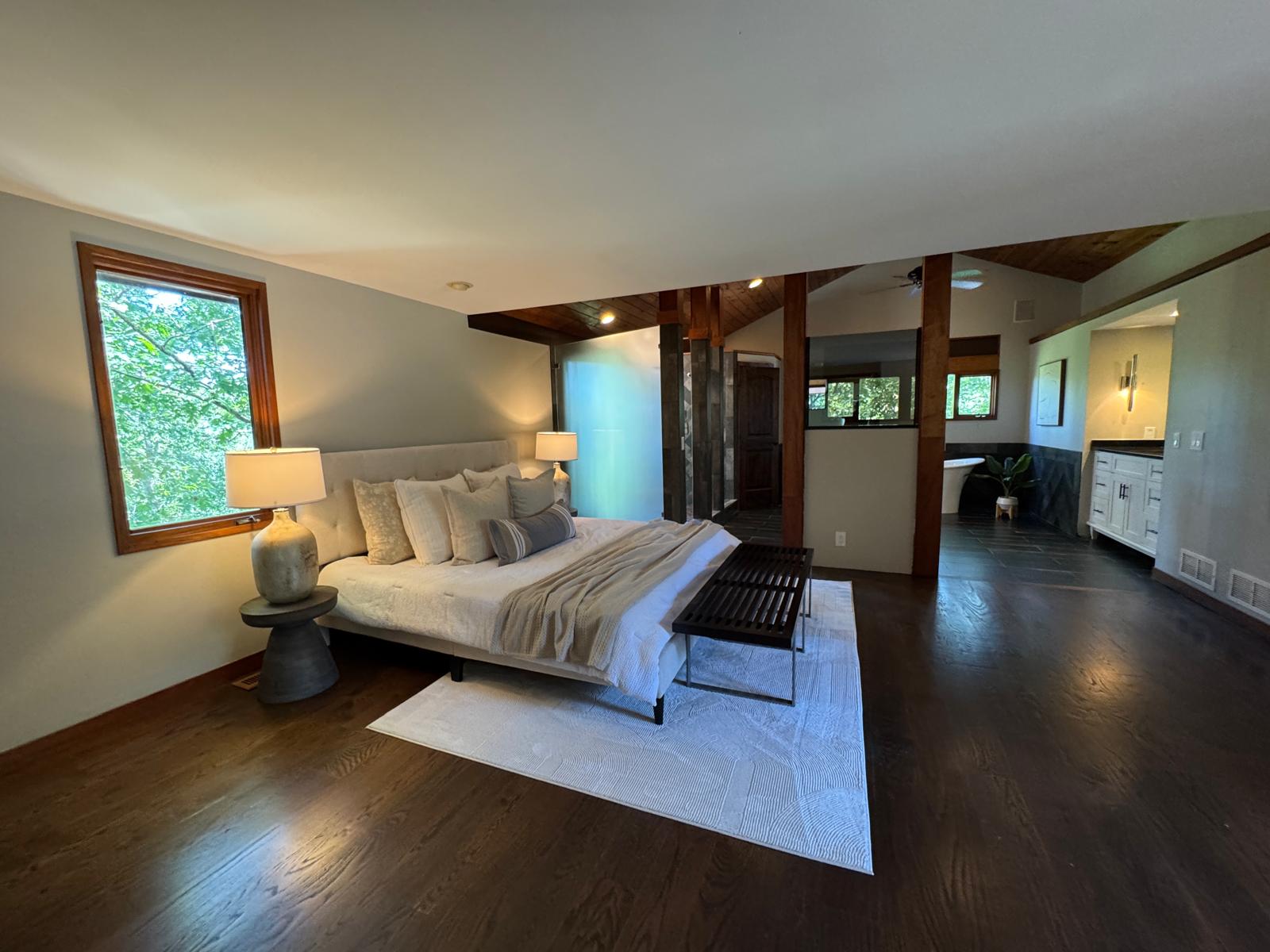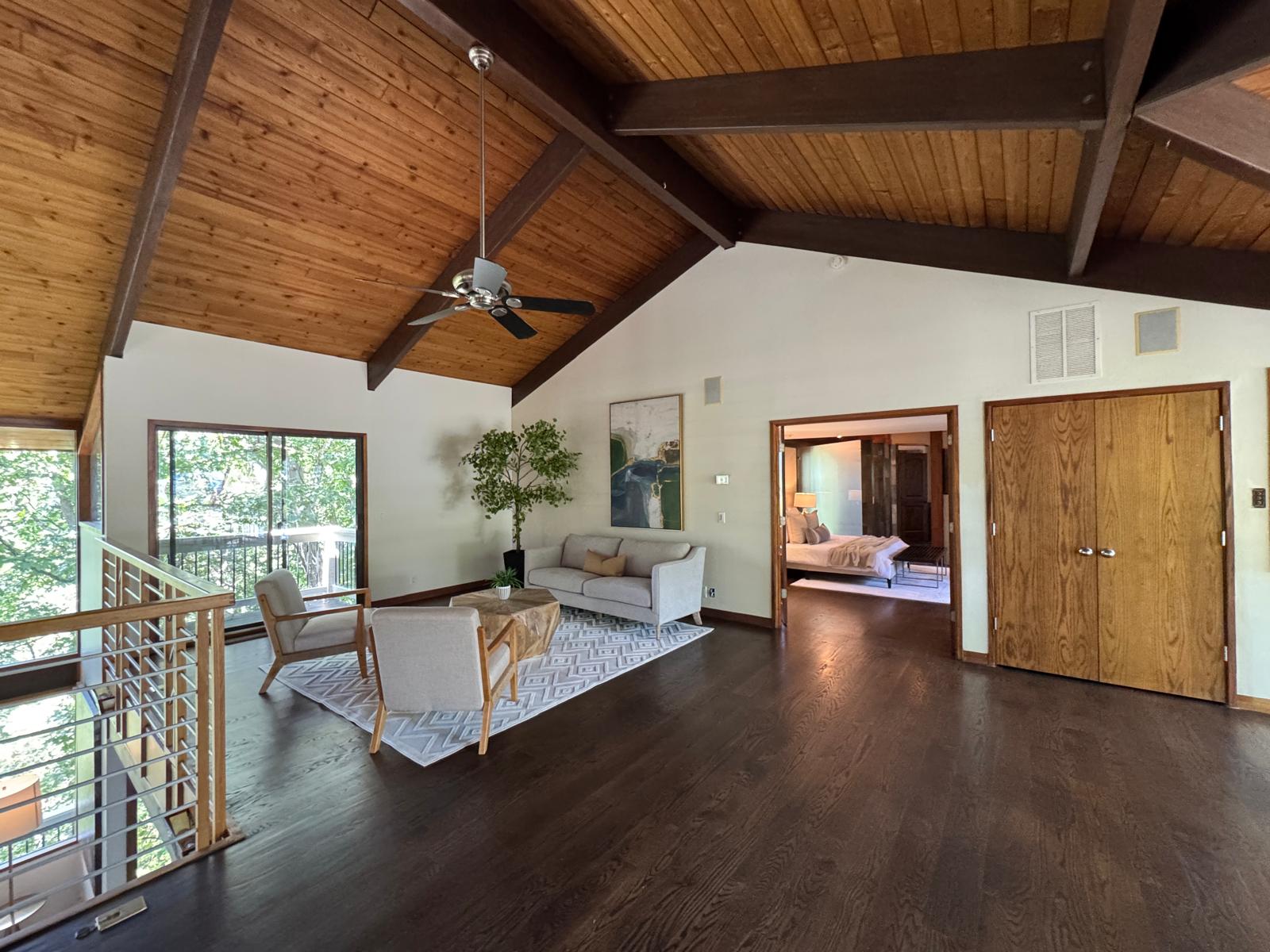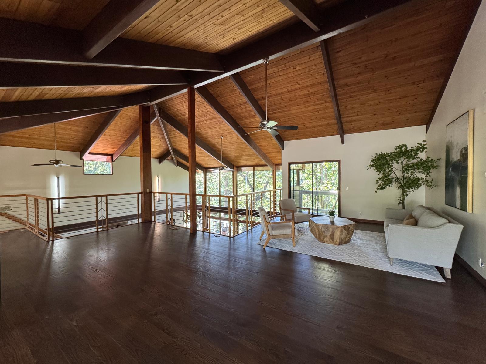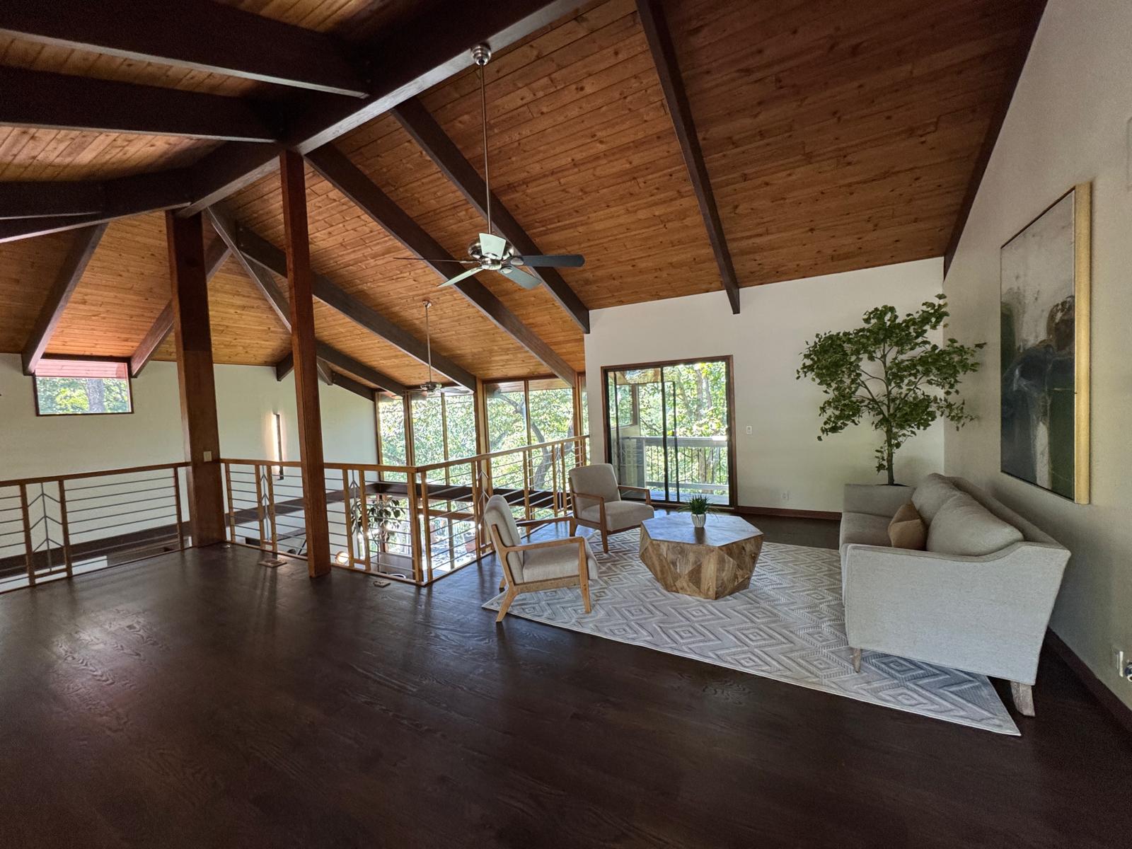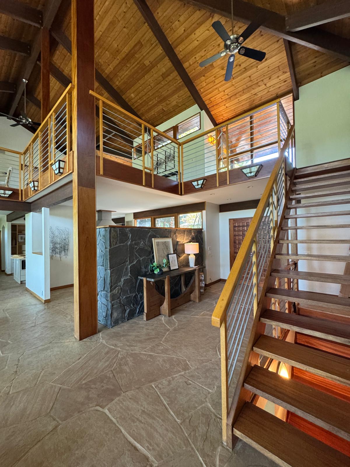 The choice of pastel white brings a sense of calm, balance, and serenity to the open spaces of this home. This soft palette enhances the natural flow of light while perfectly complementing the integration of modern lighting fixtures and carefully selected furniture in the living room and surrounding areas, creating a warm and inviting living environment.