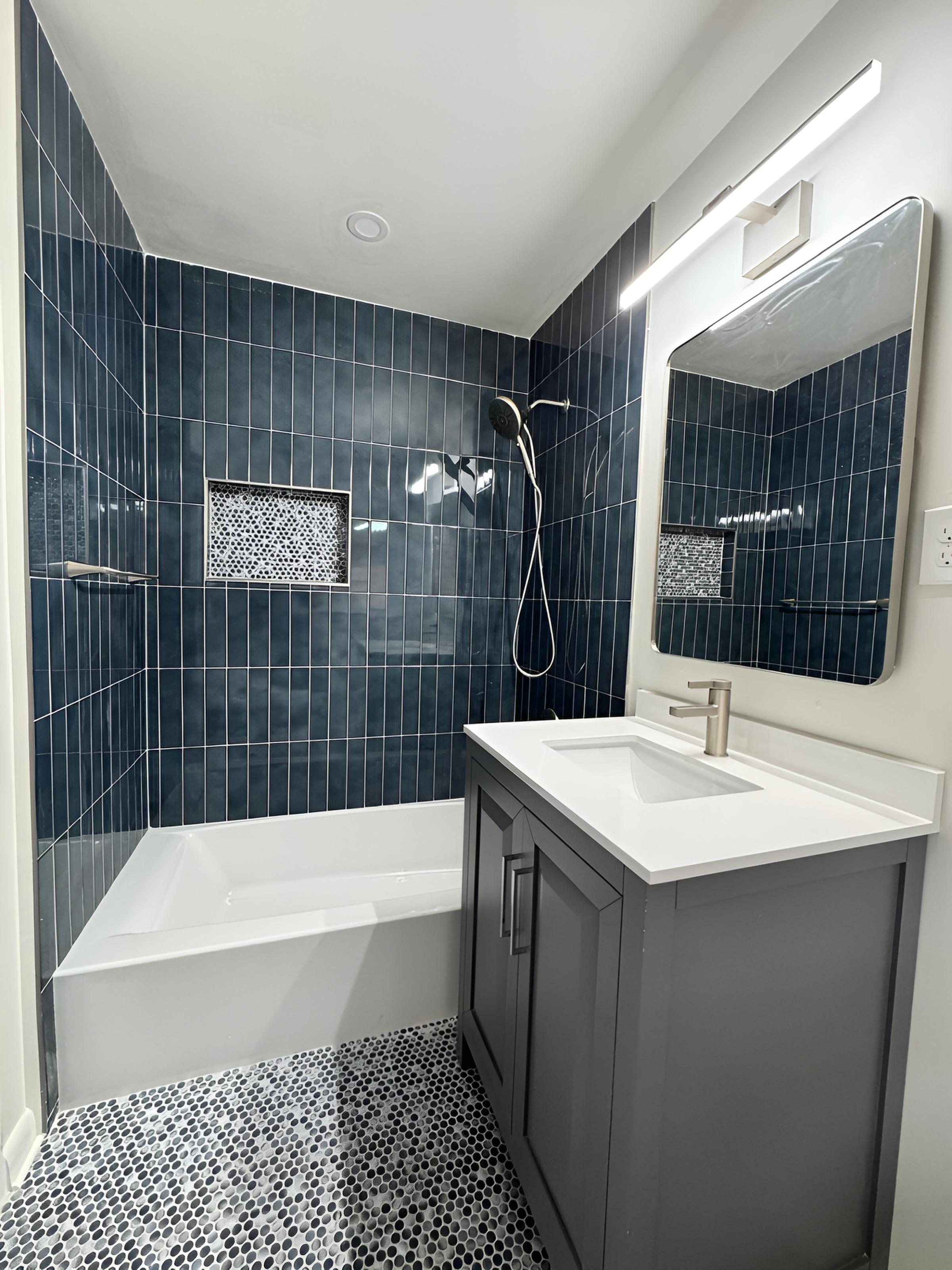 This full bathroom remodel by JMR Home showcases a modern and elegant design defined by clean lines, luminous spaces, and a fresh white color palette. Expansive glass panels in the shower and bathtub area, along with large glass installations in the vanity zone, enhance natural light and create a bright, open, spa-like atmosphere. Thoughtfully curated details combine functionality and refined materials, resulting in a sophisticated and contemporary bathroom tailored to the clientβs vision.